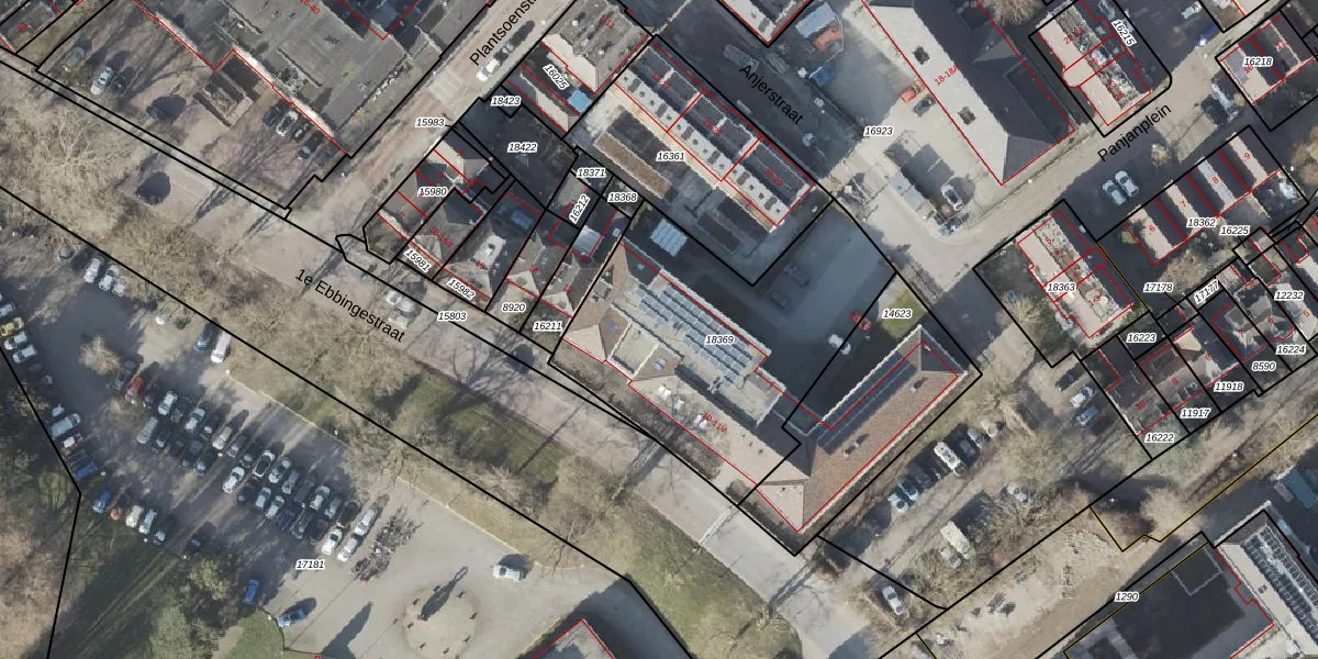 Het perceel waarop 1e Ebbingestraat 11-T staat heeft een oppervlakte van 1287 m². Dit is een zeer groot perceel. De perceeloppervlakte wordt geregistreerd door het Kadaster. Gedetailleerde informatie over de maten van dit perceel kunt u vinden in het rapport Kadastrale kaart met maatvoering van 1e Ebbingestraat 11-T.