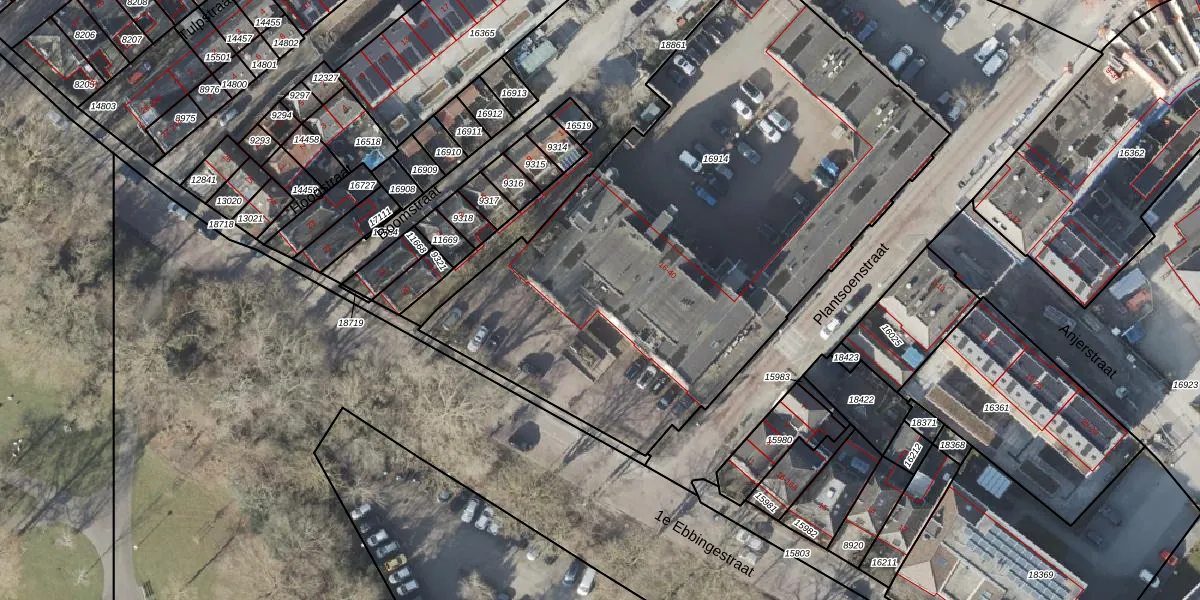 Het perceel waarop 1e Ebbingestraat 19 staat heeft een oppervlakte van 3277 m². Dit is een zeer groot perceel. De perceeloppervlakte wordt geregistreerd door het Kadaster. Gedetailleerde informatie over de maten van dit perceel kunt u vinden in het rapport Kadastrale kaart met maatvoering van 1e Ebbingestraat 19.