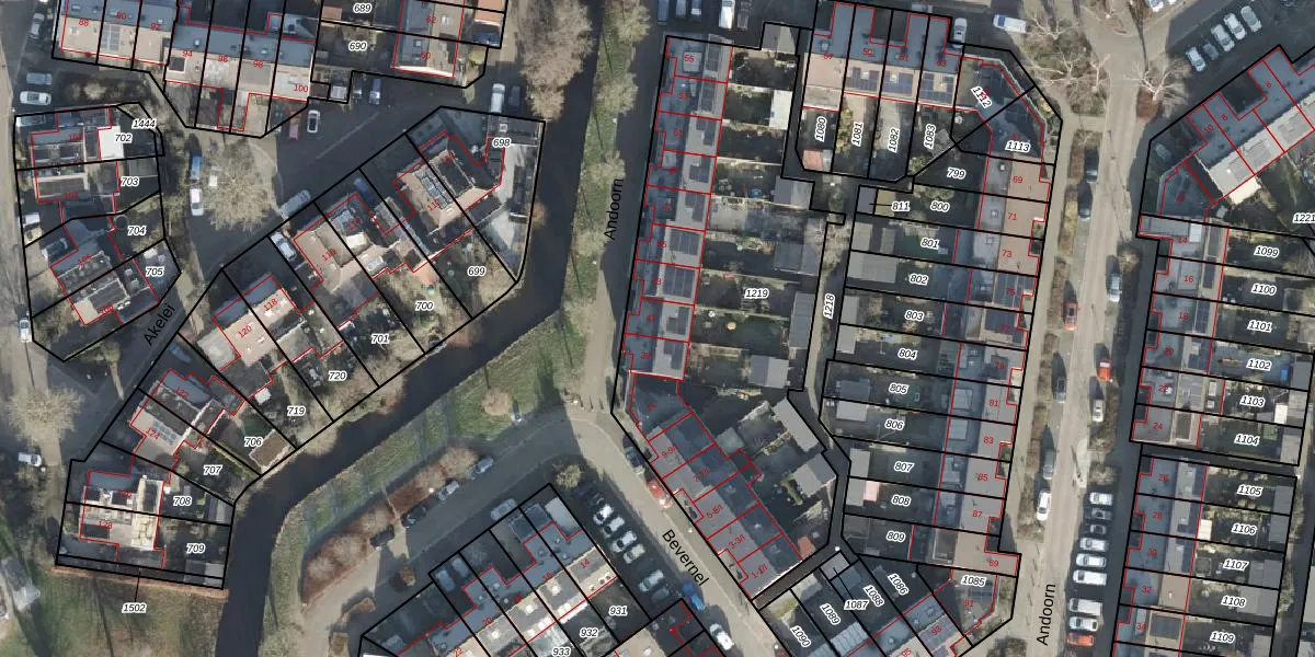 Het perceel waarop Andoorn 41 staat heeft een oppervlakte van 2027 m². Dit is een zeer groot perceel. De perceeloppervlakte wordt geregistreerd door het Kadaster. Gedetailleerde informatie over de maten van dit perceel kunt u vinden in het rapport Kadastrale kaart met maatvoering van Andoorn 41.