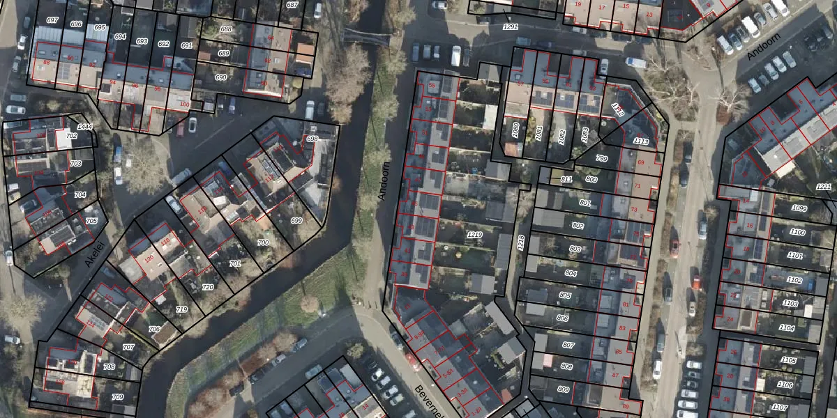 Het perceel waarop Andoorn 45 staat heeft een oppervlakte van 2027 m². Dit is een zeer groot perceel. De perceeloppervlakte wordt geregistreerd door het Kadaster. Gedetailleerde informatie over de maten van dit perceel kunt u vinden in het rapport Kadastrale kaart met maatvoering van Andoorn 45.