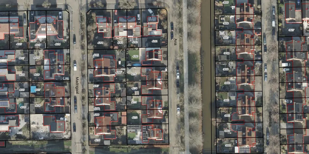 Het perceel waarop Aria 34 staat heeft een oppervlakte van 253 m². Dit is een middelgroot perceel. De perceeloppervlakte wordt geregistreerd door het Kadaster. Gedetailleerde informatie over de maten van dit perceel kunt u vinden in het rapport Kadastrale kaart met maatvoering van Aria 34.