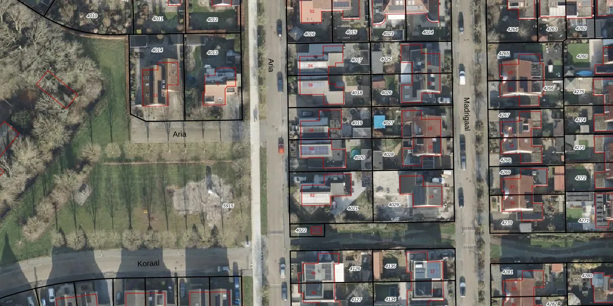 Het perceel waarop Aria 60 staat heeft een oppervlakte van 286 m². Dit is een middelgroot perceel. De perceeloppervlakte wordt geregistreerd door het Kadaster. Gedetailleerde informatie over de maten van dit perceel kunt u vinden in het rapport Kadastrale kaart met maatvoering van Aria 60.