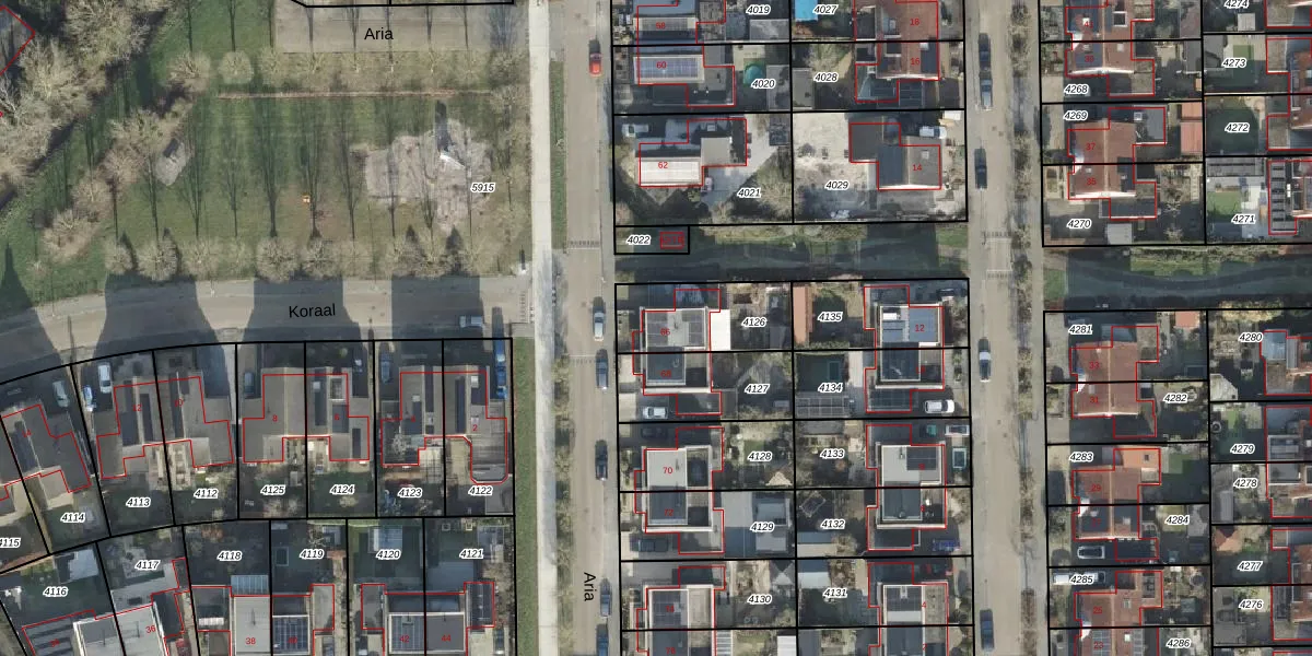 Het perceel waarop Aria 66 staat heeft een oppervlakte van 284 m². Dit is een middelgroot perceel. De perceeloppervlakte wordt geregistreerd door het Kadaster. Gedetailleerde informatie over de maten van dit perceel kunt u vinden in het rapport Kadastrale kaart met maatvoering van Aria 66.