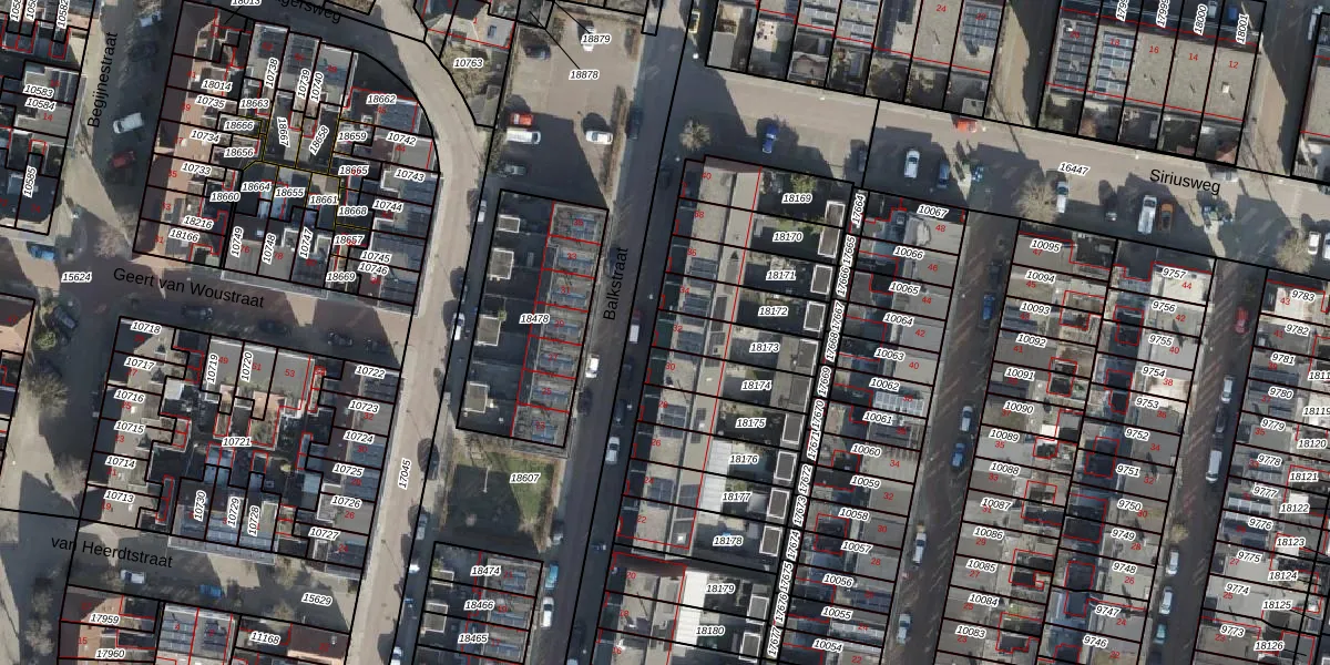 Gebruik de zoekbalk of klik op een perceel voor informatie over de adressen binnen dit perceel.