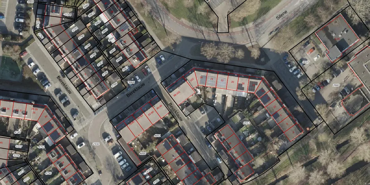 Het perceel waarop Bereklauw 100 staat heeft een oppervlakte van 2990 m². Dit is een zeer groot perceel. De perceeloppervlakte wordt geregistreerd door het Kadaster. Gedetailleerde informatie over de maten van dit perceel kunt u vinden in het rapport Kadastrale kaart met maatvoering van Bereklauw 100.
