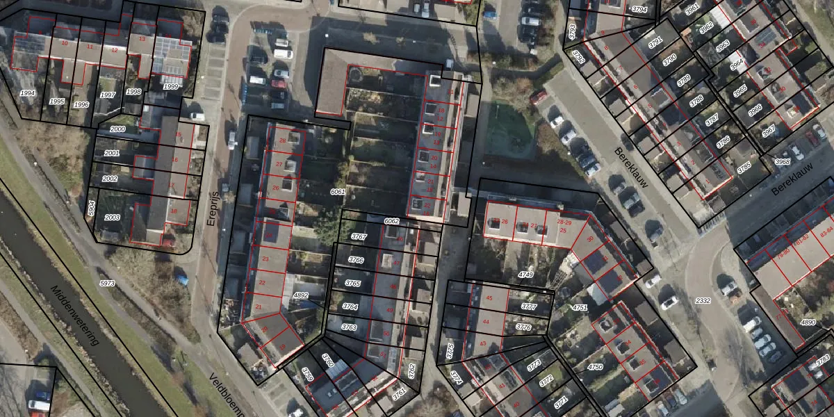 Het perceel waarop Bereklauw 22 staat heeft een oppervlakte van 2669 m². Dit is een zeer groot perceel. De perceeloppervlakte wordt geregistreerd door het Kadaster. Gedetailleerde informatie over de maten van dit perceel kunt u vinden in het rapport Kadastrale kaart met maatvoering van Bereklauw 22.