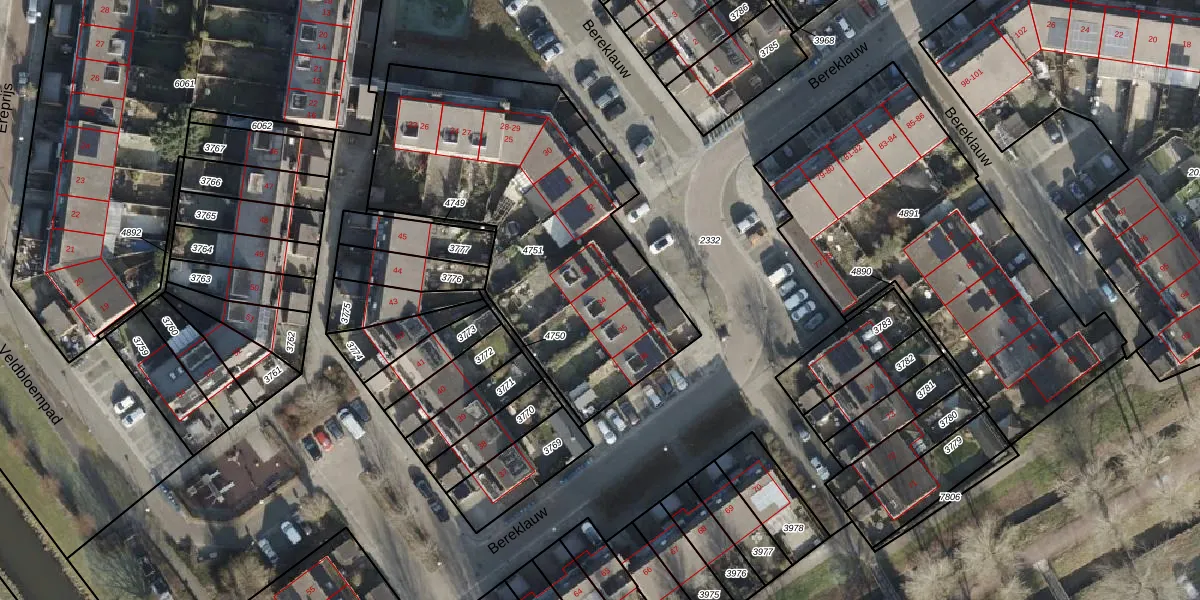 Het perceel waarop Bereklauw 34 staat heeft een oppervlakte van 1631 m². Dit is een zeer groot perceel. De perceeloppervlakte wordt geregistreerd door het Kadaster. Gedetailleerde informatie over de maten van dit perceel kunt u vinden in het rapport Kadastrale kaart met maatvoering van Bereklauw 34.