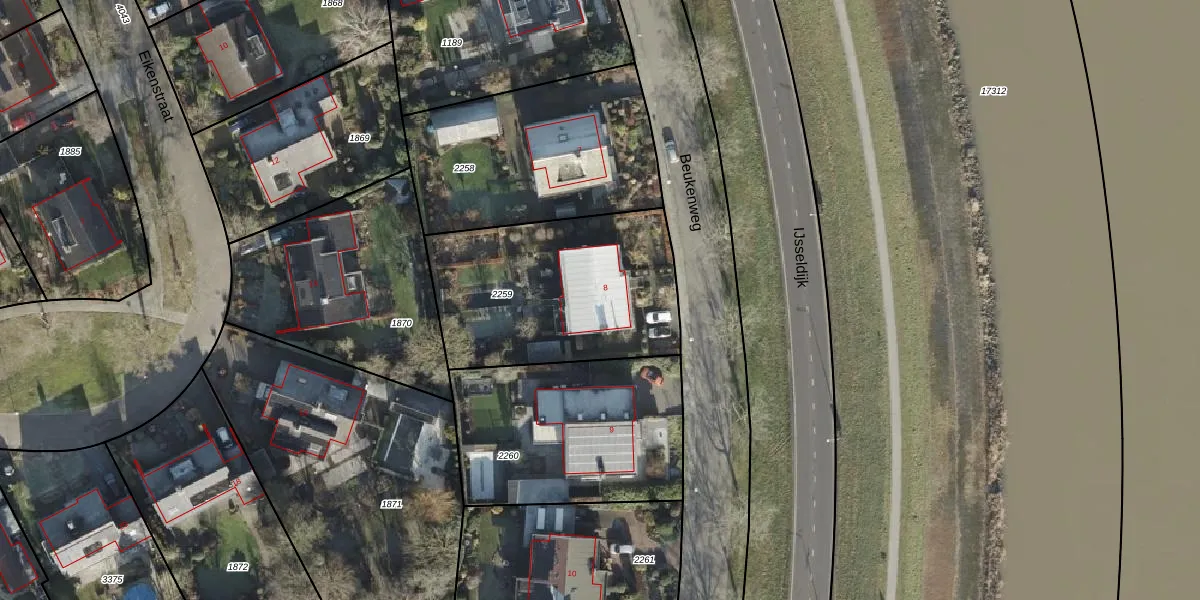 Beukenweg 8 is gelegen op kadastraal perceel KPN01P2259. Deze kadastrale aanduiding is uniek en wordt gebruikt door het Kadaster om eigendomsrechten en andere zakelijke rechten vast te leggen. Het perceel maakt onderdeel uit van de kadastrale gemeente Kampen.
