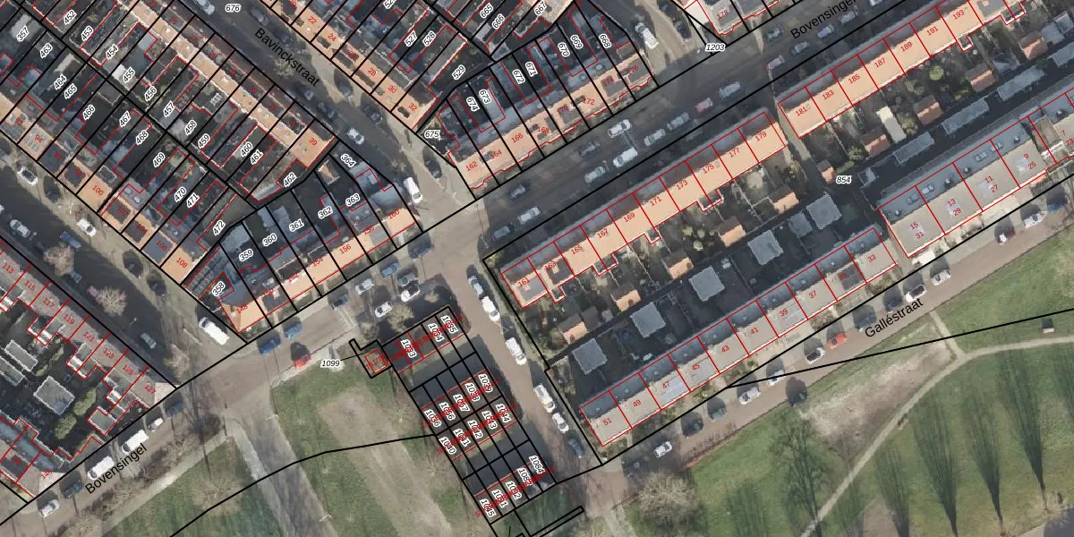 Het perceel waarop Bovensingel 163 staat heeft een oppervlakte van 5977 m². Dit is een zeer groot perceel. De perceeloppervlakte wordt geregistreerd door het Kadaster. Gedetailleerde informatie over de maten van dit perceel kunt u vinden in het rapport Kadastrale kaart met maatvoering van Bovensingel 163.
