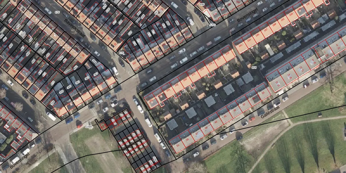 Het perceel waarop Bovensingel 167 staat heeft een oppervlakte van 5977 m². Dit is een zeer groot perceel. De perceeloppervlakte wordt geregistreerd door het Kadaster. Gedetailleerde informatie over de maten van dit perceel kunt u vinden in het rapport Kadastrale kaart met maatvoering van Bovensingel 167.