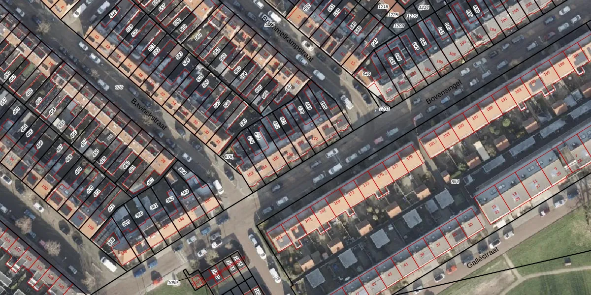 Het perceel waarop Bovensingel 170 staat heeft een oppervlakte van 99 m². Dit is een klein perceel. De perceeloppervlakte wordt geregistreerd door het Kadaster. Gedetailleerde informatie over de maten van dit perceel kunt u vinden in het rapport Kadastrale kaart met maatvoering van Bovensingel 170.