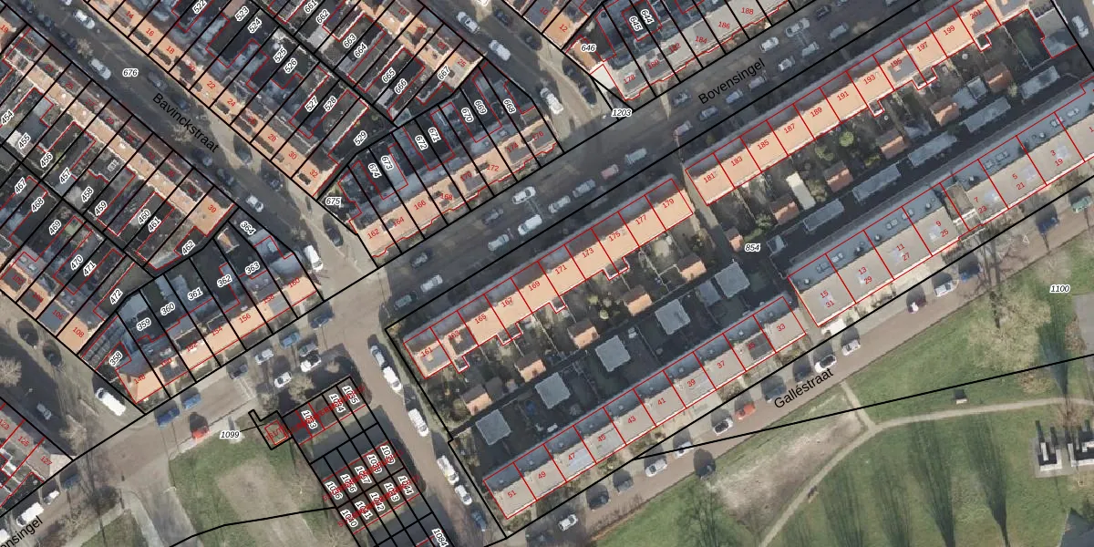 Het perceel waarop Bovensingel 171 staat heeft een oppervlakte van 5977 m². Dit is een zeer groot perceel. De perceeloppervlakte wordt geregistreerd door het Kadaster. Gedetailleerde informatie over de maten van dit perceel kunt u vinden in het rapport Kadastrale kaart met maatvoering van Bovensingel 171.