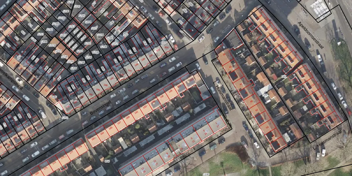 Het perceel waarop Bovensingel 201 staat heeft een oppervlakte van 5977 m². Dit is een zeer groot perceel. De perceeloppervlakte wordt geregistreerd door het Kadaster. Gedetailleerde informatie over de maten van dit perceel kunt u vinden in het rapport Kadastrale kaart met maatvoering van Bovensingel 201.