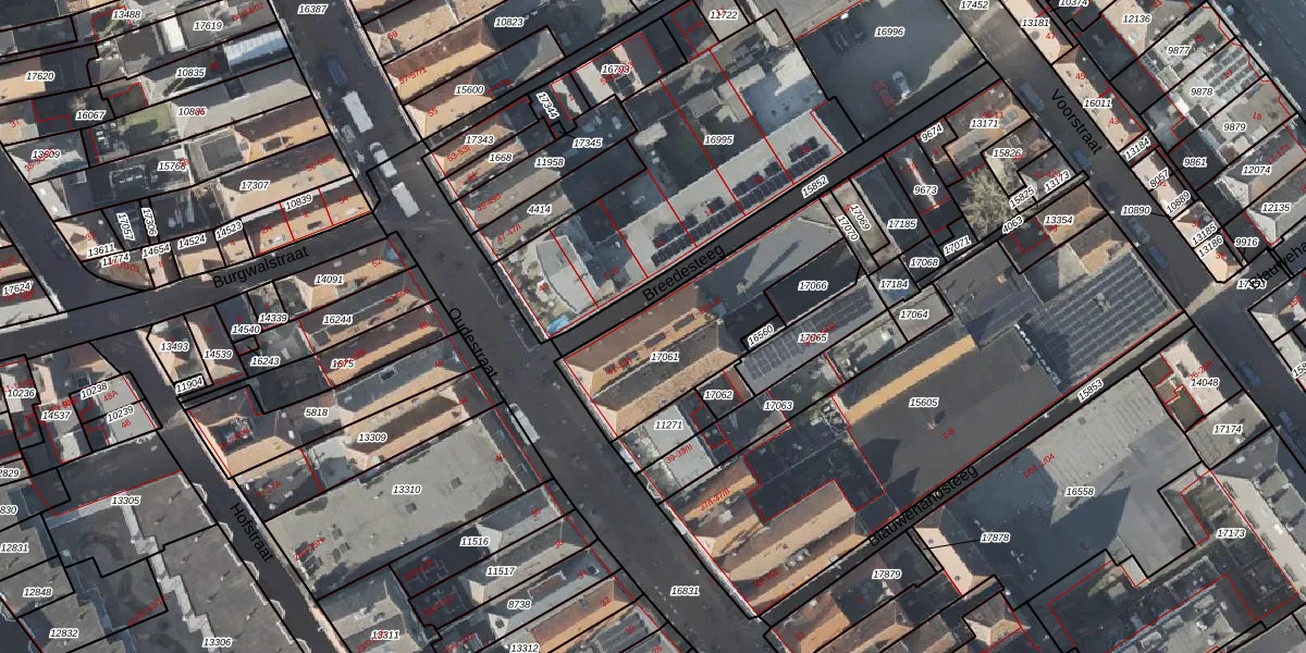 Het perceel waarop Breedesteeg 1-01 staat heeft een oppervlakte van 554 m². Dit is een groot perceel. De perceeloppervlakte wordt geregistreerd door het Kadaster. Gedetailleerde informatie over de maten van dit perceel kunt u vinden in het rapport Kadastrale kaart met maatvoering van Breedesteeg 1-01.