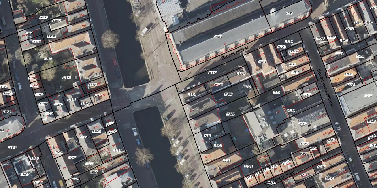 Het perceel waarop Broederstraat 37-E staat heeft een oppervlakte van 90 m². Dit is een klein perceel. De perceeloppervlakte wordt geregistreerd door het Kadaster. Gedetailleerde informatie over de maten van dit perceel kunt u vinden in het rapport Kadastrale kaart met maatvoering van Broederstraat 37-E.