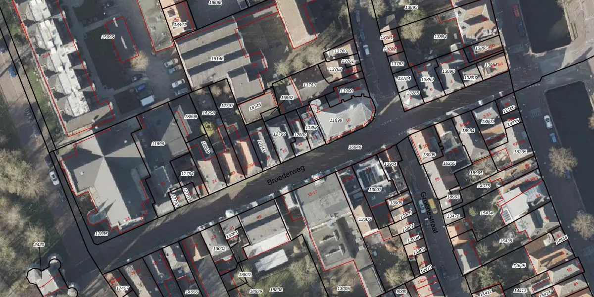 Het perceel waarop Broederweg 14 staat heeft een oppervlakte van 76 m². Dit is een klein perceel. De perceeloppervlakte wordt geregistreerd door het Kadaster. Gedetailleerde informatie over de maten van dit perceel kunt u vinden in het rapport Kadastrale kaart met maatvoering van Broederweg 14.