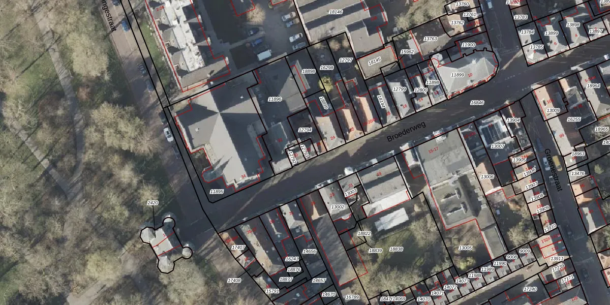 Het perceel waarop Broederweg 28 staat heeft een oppervlakte van 23 m². Dit is een klein perceel. De perceeloppervlakte wordt geregistreerd door het Kadaster. Gedetailleerde informatie over de maten van dit perceel kunt u vinden in het rapport Kadastrale kaart met maatvoering van Broederweg 28.