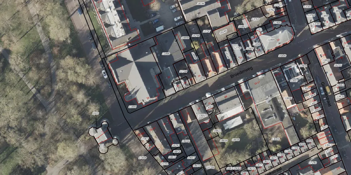 Het perceel waarop Broederweg 30 staat heeft een oppervlakte van 34 m². Dit is een klein perceel. De perceeloppervlakte wordt geregistreerd door het Kadaster. Gedetailleerde informatie over de maten van dit perceel kunt u vinden in het rapport Kadastrale kaart met maatvoering van Broederweg 30.
