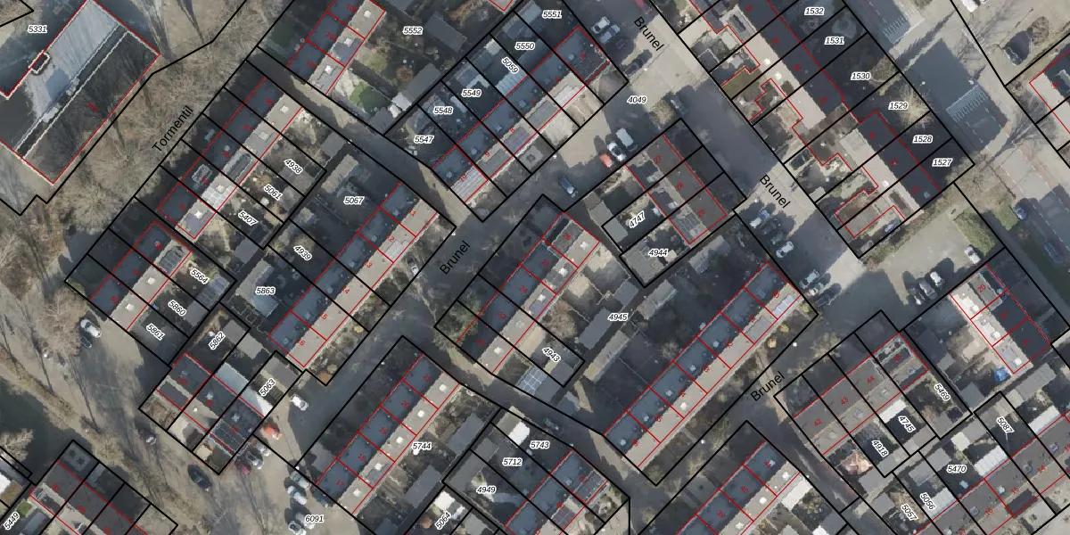 Het perceel waarop Brunel 25 staat heeft een oppervlakte van 2035 m². Dit is een zeer groot perceel. De perceeloppervlakte wordt geregistreerd door het Kadaster. Gedetailleerde informatie over de maten van dit perceel kunt u vinden in het rapport Kadastrale kaart met maatvoering van Brunel 25.
