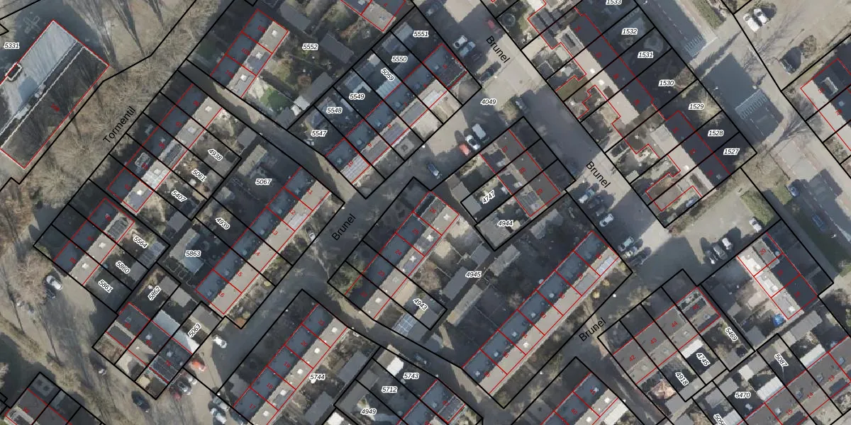 Het perceel waarop Brunel 26 staat heeft een oppervlakte van 2035 m². Dit is een zeer groot perceel. De perceeloppervlakte wordt geregistreerd door het Kadaster. Gedetailleerde informatie over de maten van dit perceel kunt u vinden in het rapport Kadastrale kaart met maatvoering van Brunel 26.