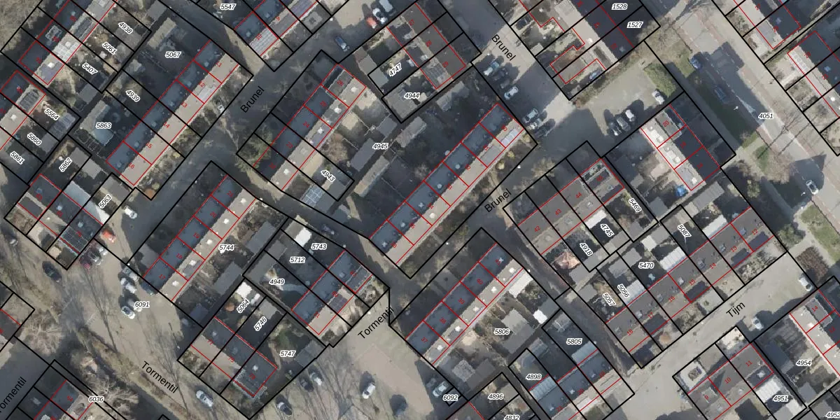 Het perceel waarop Brunel 34 staat heeft een oppervlakte van 2035 m². Dit is een zeer groot perceel. De perceeloppervlakte wordt geregistreerd door het Kadaster. Gedetailleerde informatie over de maten van dit perceel kunt u vinden in het rapport Kadastrale kaart met maatvoering van Brunel 34.