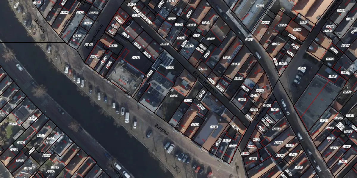 Het perceel waarop Burgwal 105 staat heeft een oppervlakte van 280 m². Dit is een middelgroot perceel. De perceeloppervlakte wordt geregistreerd door het Kadaster. Gedetailleerde informatie over de maten van dit perceel kunt u vinden in het rapport Kadastrale kaart met maatvoering van Burgwal 105.