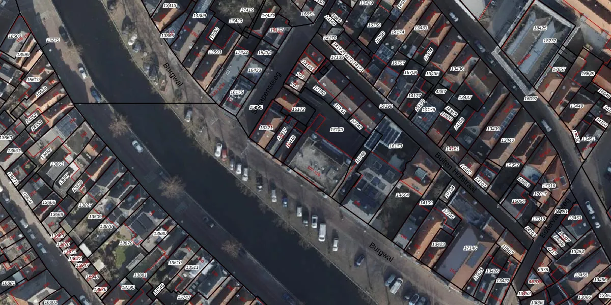 Het perceel waarop Burgwal 110 staat heeft een oppervlakte van 494 m². Dit is een groot perceel. De perceeloppervlakte wordt geregistreerd door het Kadaster. Gedetailleerde informatie over de maten van dit perceel kunt u vinden in het rapport Kadastrale kaart met maatvoering van Burgwal 110.