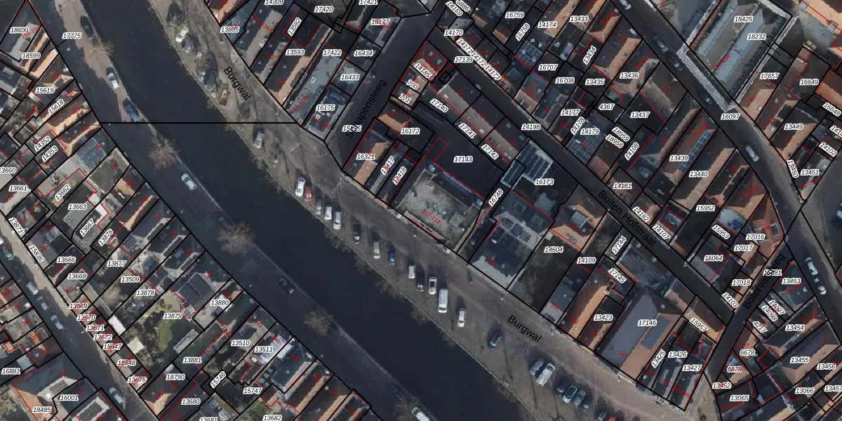 Het perceel waarop Burgwal 113 staat heeft een oppervlakte van 494 m². Dit is een groot perceel. De perceeloppervlakte wordt geregistreerd door het Kadaster. Gedetailleerde informatie over de maten van dit perceel kunt u vinden in het rapport Kadastrale kaart met maatvoering van Burgwal 113.
