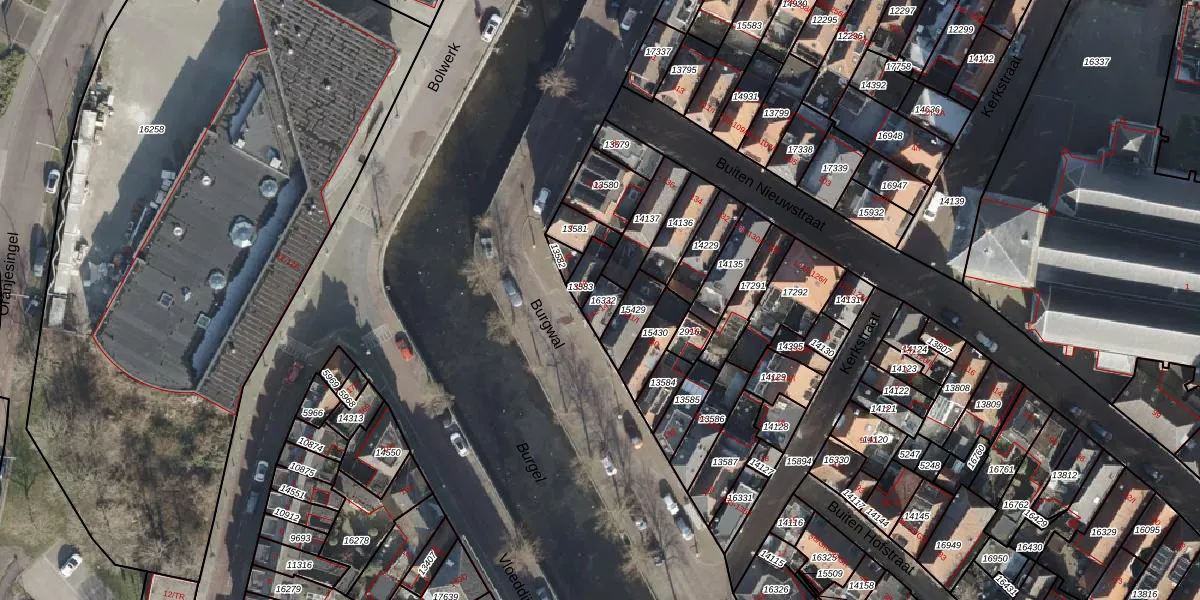 Het perceel waarop Burgwal 143 staat heeft een oppervlakte van 39 m². Dit is een klein perceel. De perceeloppervlakte wordt geregistreerd door het Kadaster. Gedetailleerde informatie over de maten van dit perceel kunt u vinden in het rapport Kadastrale kaart met maatvoering van Burgwal 143.