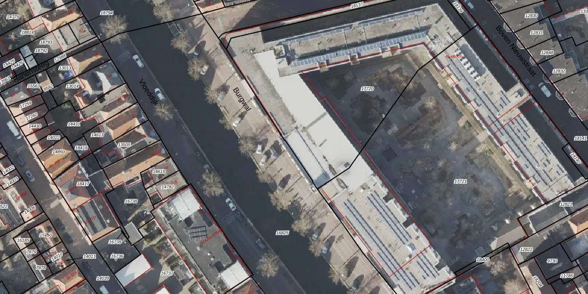 Het perceel waarop Burgwal 45 staat heeft een oppervlakte van 2784 m². Dit is een zeer groot perceel. De perceeloppervlakte wordt geregistreerd door het Kadaster. Gedetailleerde informatie over de maten van dit perceel kunt u vinden in het rapport Kadastrale kaart met maatvoering van Burgwal 45.