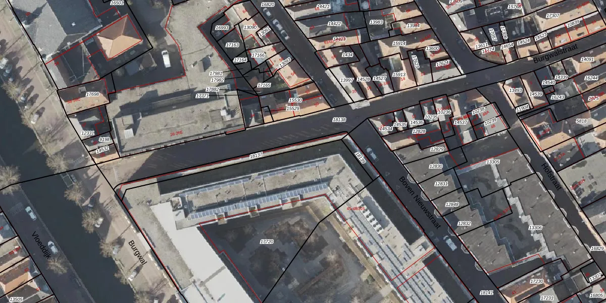 Het perceel waarop Burgwal 45-313 staat heeft een oppervlakte van 2784 m². Dit is een zeer groot perceel. De perceeloppervlakte wordt geregistreerd door het Kadaster. Gedetailleerde informatie over de maten van dit perceel kunt u vinden in het rapport Kadastrale kaart met maatvoering van Burgwal 45-313.