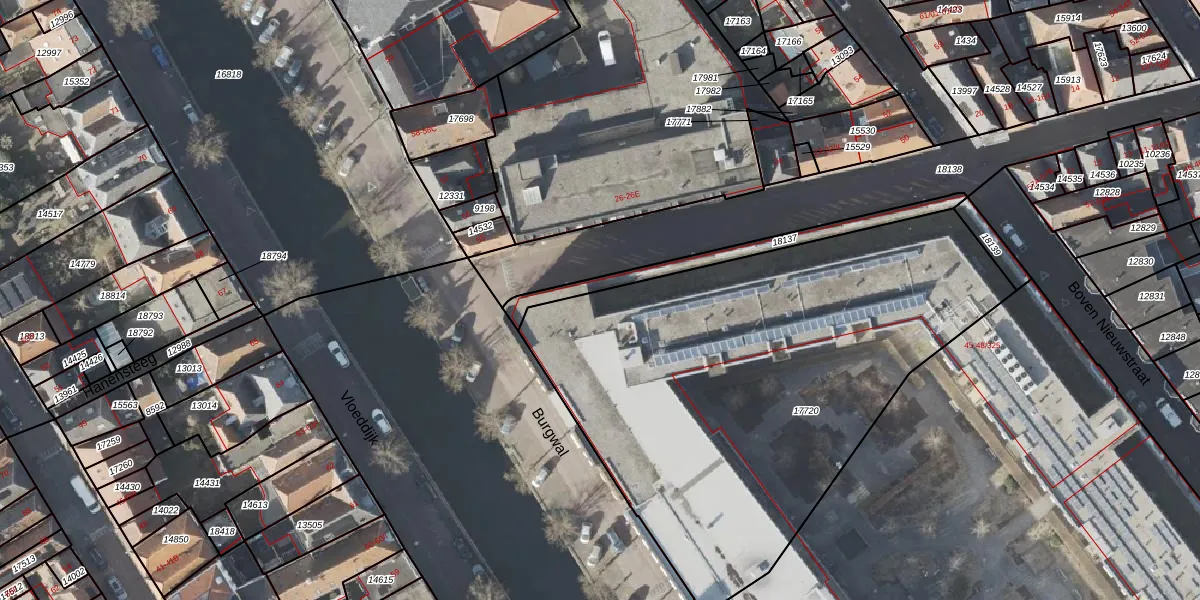 Het perceel waarop Burgwal 45-007 staat heeft een oppervlakte van 2784 m². Dit is een zeer groot perceel. De perceeloppervlakte wordt geregistreerd door het Kadaster. Gedetailleerde informatie over de maten van dit perceel kunt u vinden in het rapport Kadastrale kaart met maatvoering van Burgwal 45-007.