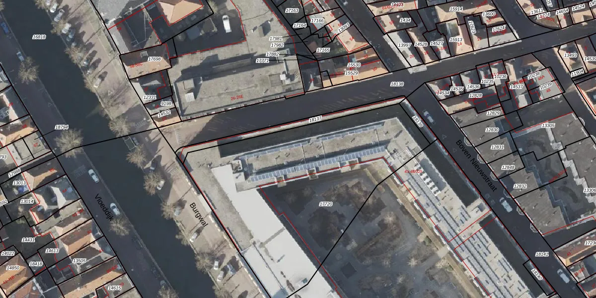 Het perceel waarop Burgwal 45-118 staat heeft een oppervlakte van 2784 m². Dit is een zeer groot perceel. De perceeloppervlakte wordt geregistreerd door het Kadaster. Gedetailleerde informatie over de maten van dit perceel kunt u vinden in het rapport Kadastrale kaart met maatvoering van Burgwal 45-118.