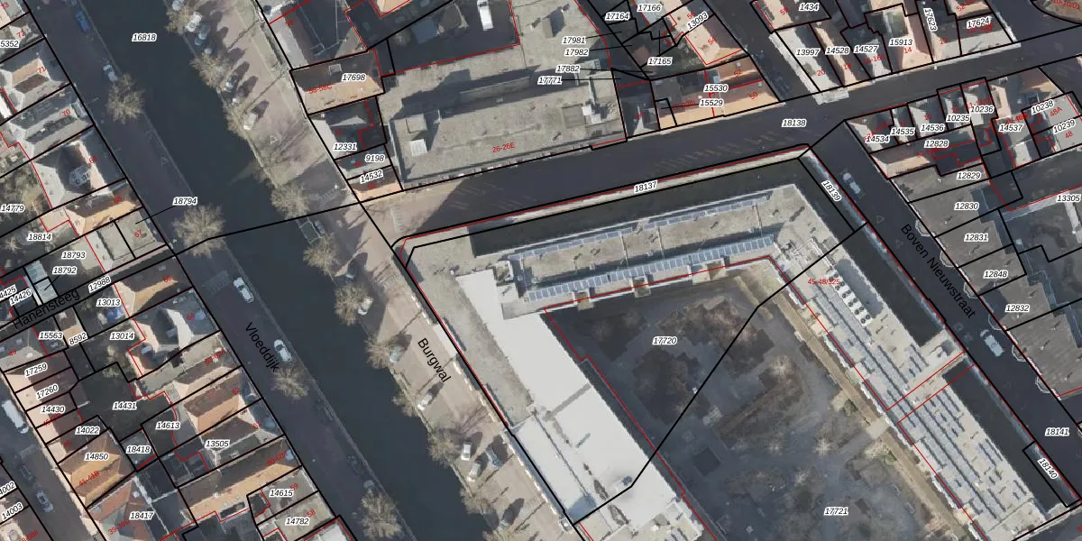 Het perceel waarop Burgwal 45-129 staat heeft een oppervlakte van 2784 m². Dit is een zeer groot perceel. De perceeloppervlakte wordt geregistreerd door het Kadaster. Gedetailleerde informatie over de maten van dit perceel kunt u vinden in het rapport Kadastrale kaart met maatvoering van Burgwal 45-129.