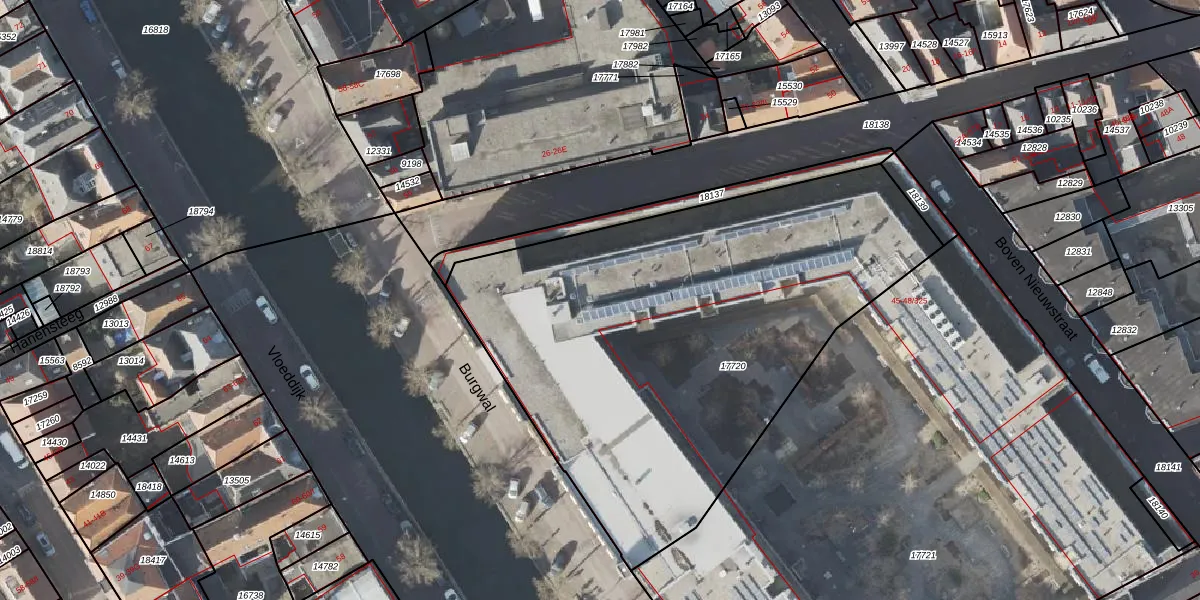 Het perceel waarop Burgwal 45-205 staat heeft een oppervlakte van 2784 m². Dit is een zeer groot perceel. De perceeloppervlakte wordt geregistreerd door het Kadaster. Gedetailleerde informatie over de maten van dit perceel kunt u vinden in het rapport Kadastrale kaart met maatvoering van Burgwal 45-205.