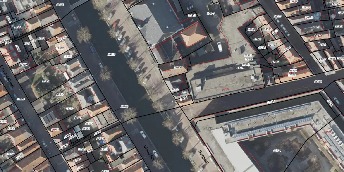 Het perceel waarop Burgwal 57 staat heeft een oppervlakte van 106 m². Dit is een middelgroot perceel. De perceeloppervlakte wordt geregistreerd door het Kadaster. Gedetailleerde informatie over de maten van dit perceel kunt u vinden in het rapport Kadastrale kaart met maatvoering van Burgwal 57.