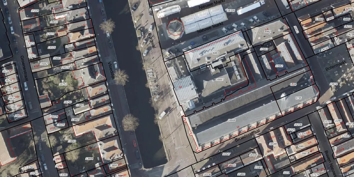 Het perceel waarop Burgwal 84 staat heeft een oppervlakte van 985 m². Dit is een groot perceel. De perceeloppervlakte wordt geregistreerd door het Kadaster. Gedetailleerde informatie over de maten van dit perceel kunt u vinden in het rapport Kadastrale kaart met maatvoering van Burgwal 84.