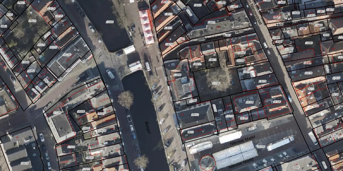 Het perceel waarop Burgwal 86 staat heeft een oppervlakte van 357 m². Dit is een groot perceel. De perceeloppervlakte wordt geregistreerd door het Kadaster. Gedetailleerde informatie over de maten van dit perceel kunt u vinden in het rapport Kadastrale kaart met maatvoering van Burgwal 86.