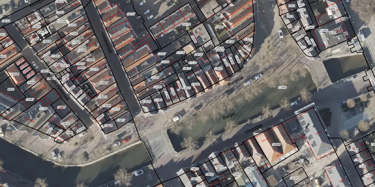 Het perceel waarop Burgwal 9 staat heeft een oppervlakte van 85 m². Dit is een klein perceel. De perceeloppervlakte wordt geregistreerd door het Kadaster. Gedetailleerde informatie over de maten van dit perceel kunt u vinden in het rapport Kadastrale kaart met maatvoering van Burgwal 9.