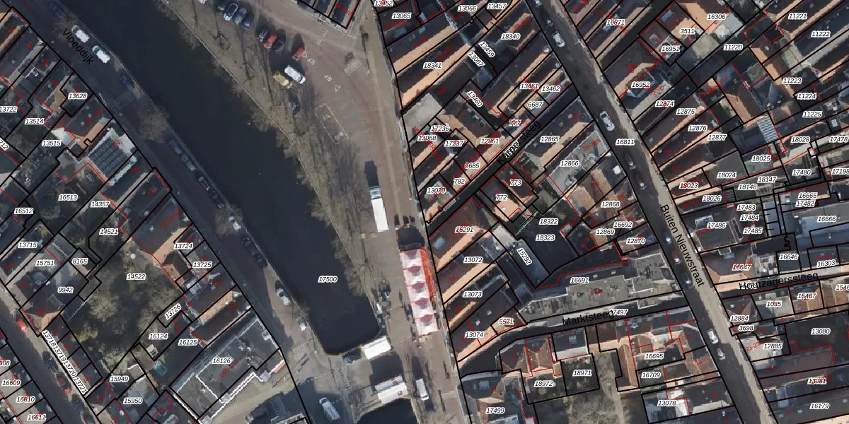 Het perceel waarop Burgwal 91 staat heeft een oppervlakte van 62 m². Dit is een klein perceel. De perceeloppervlakte wordt geregistreerd door het Kadaster. Gedetailleerde informatie over de maten van dit perceel kunt u vinden in het rapport Kadastrale kaart met maatvoering van Burgwal 91.