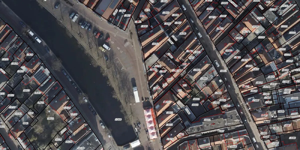 Het perceel waarop Burgwal 93 staat heeft een oppervlakte van 49 m². Dit is een klein perceel. De perceeloppervlakte wordt geregistreerd door het Kadaster. Gedetailleerde informatie over de maten van dit perceel kunt u vinden in het rapport Kadastrale kaart met maatvoering van Burgwal 93.