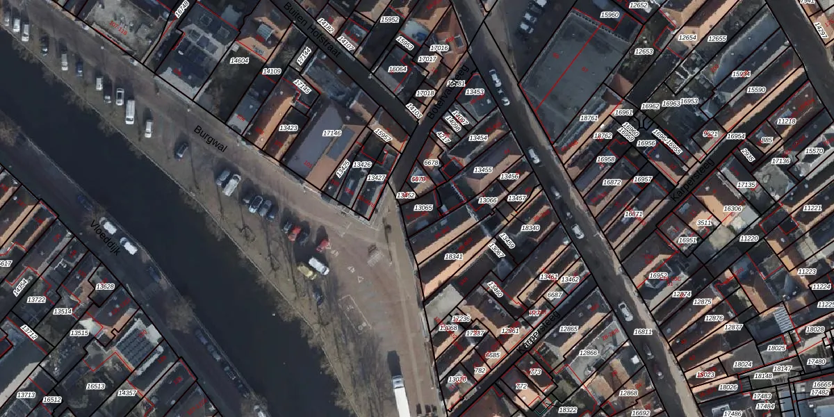 Het perceel waarop Burgwal 97-01 staat heeft een oppervlakte van 74 m². Dit is een klein perceel. De perceeloppervlakte wordt geregistreerd door het Kadaster. Gedetailleerde informatie over de maten van dit perceel kunt u vinden in het rapport Kadastrale kaart met maatvoering van Burgwal 97-01.