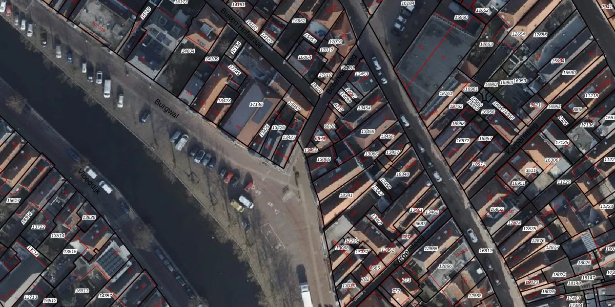 Het perceel waarop Burgwal 98 staat heeft een oppervlakte van 16 m². Dit is een klein perceel. De perceeloppervlakte wordt geregistreerd door het Kadaster. Gedetailleerde informatie over de maten van dit perceel kunt u vinden in het rapport Kadastrale kaart met maatvoering van Burgwal 98.