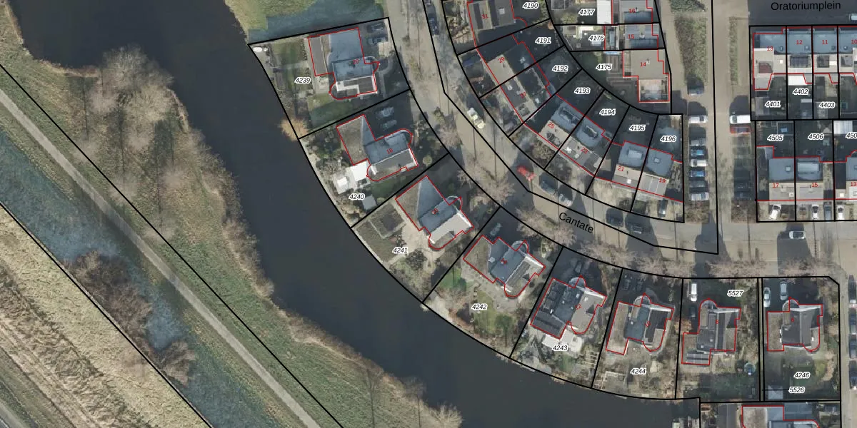 Het perceel waarop Cantate 16 staat heeft een oppervlakte van 605 m². Dit is een groot perceel. De perceeloppervlakte wordt geregistreerd door het Kadaster. Gedetailleerde informatie over de maten van dit perceel kunt u vinden in het rapport Kadastrale kaart met maatvoering van Cantate 16.