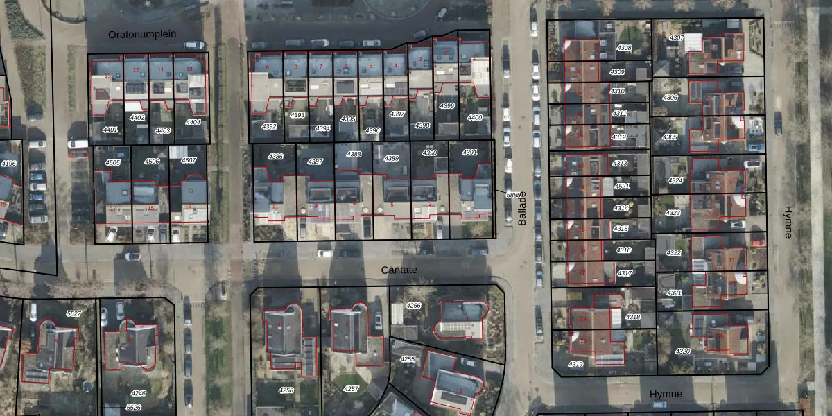 Het perceel waarop Cantate 3 staat heeft een oppervlakte van 217 m². Dit is een middelgroot perceel. De perceeloppervlakte wordt geregistreerd door het Kadaster. Gedetailleerde informatie over de maten van dit perceel kunt u vinden in het rapport Kadastrale kaart met maatvoering van Cantate 3.