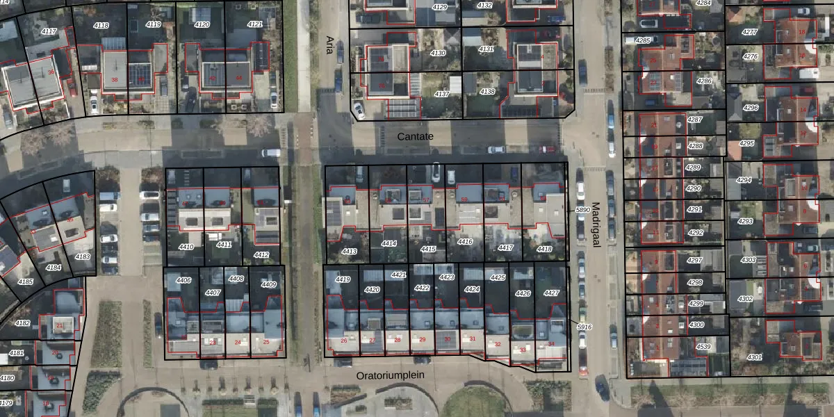 Gebruik de zoekbalk of klik op een perceel voor informatie over de adressen binnen dit perceel.