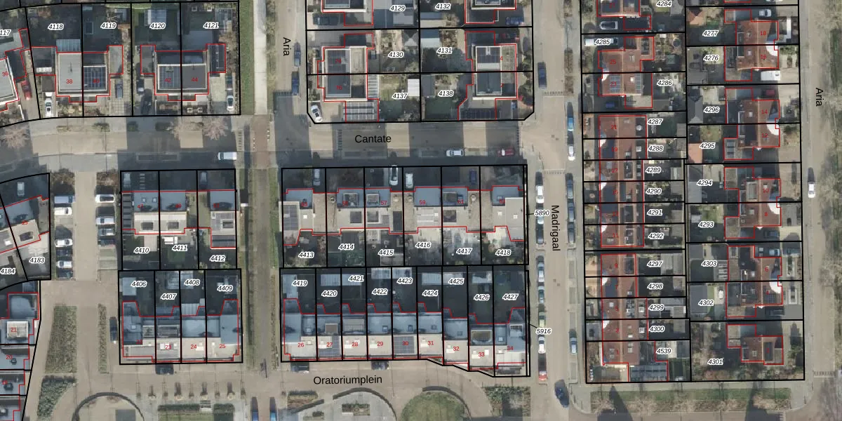 Het perceel waarop Cantate 59 staat heeft een oppervlakte van 217 m². Dit is een middelgroot perceel. De perceeloppervlakte wordt geregistreerd door het Kadaster. Gedetailleerde informatie over de maten van dit perceel kunt u vinden in het rapport Kadastrale kaart met maatvoering van Cantate 59.