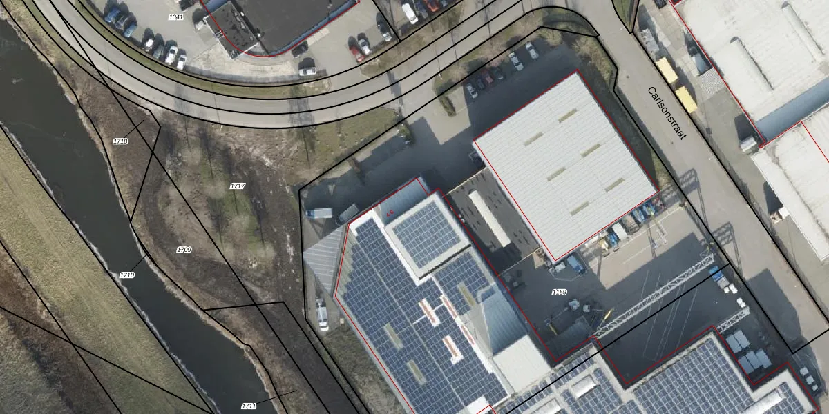 Het perceel waarop Carlsonstraat 6-C staat heeft een oppervlakte van 6552 m². Dit is een zeer groot perceel. De perceeloppervlakte wordt geregistreerd door het Kadaster. Gedetailleerde informatie over de maten van dit perceel kunt u vinden in het rapport Kadastrale kaart met maatvoering van Carlsonstraat 6-C.