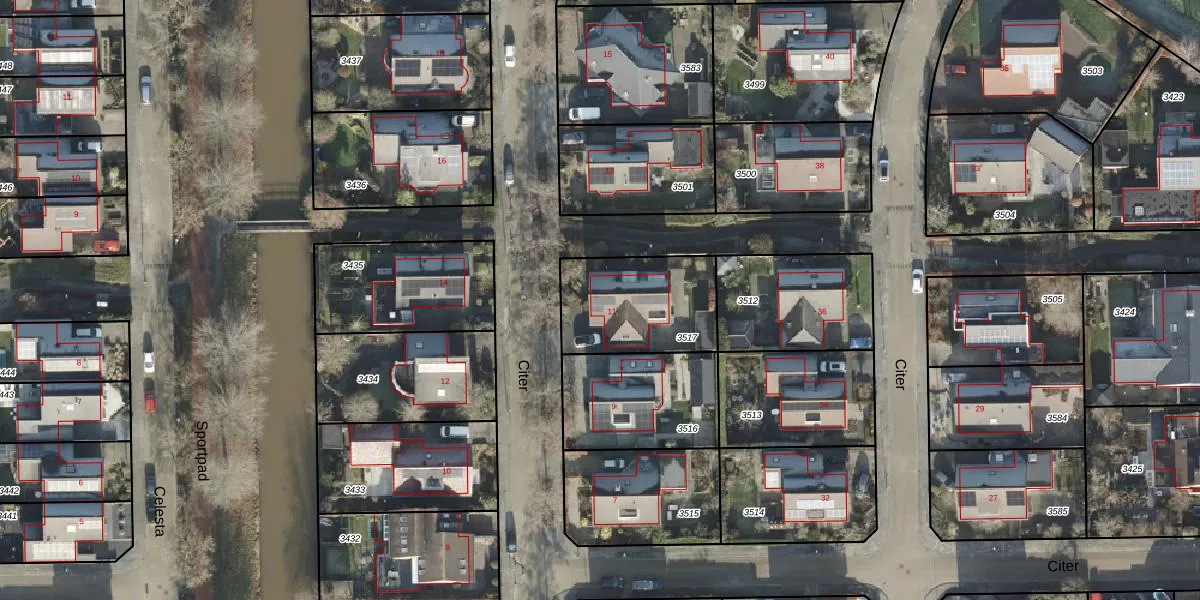 Gebruik de zoekbalk of klik op een perceel voor informatie over de adressen binnen dit perceel.