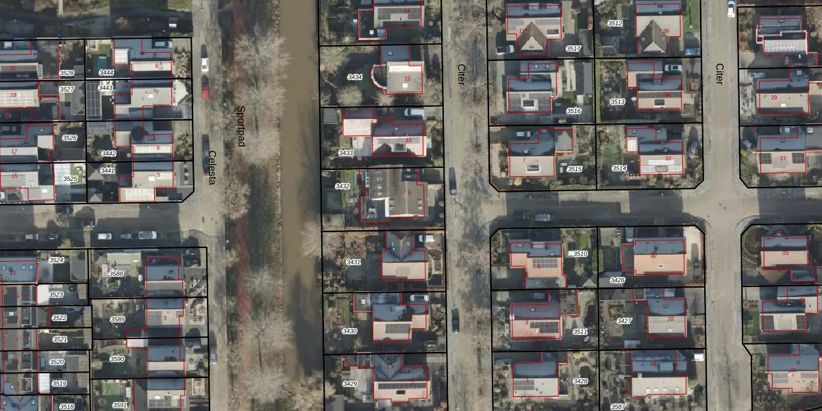 Gebruik de zoekbalk of klik op een perceel voor informatie over de adressen binnen dit perceel.